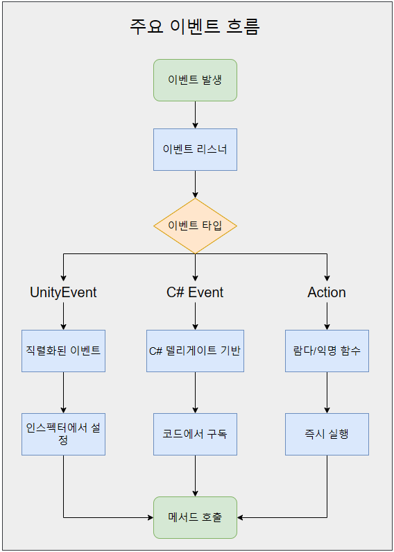 // UI나 에디터 작업이 필요한 부분만 UnityEvent 사용