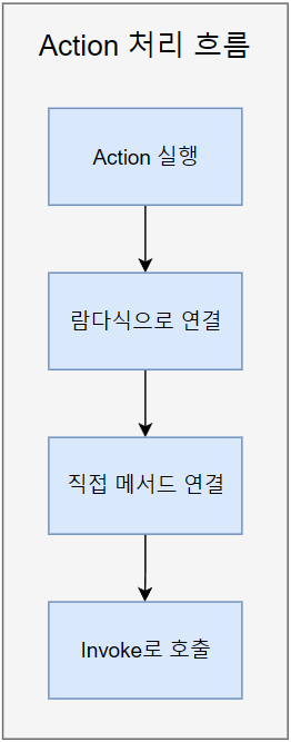 - Action: 누구나 직접 호출, 할당, null 설정 가능