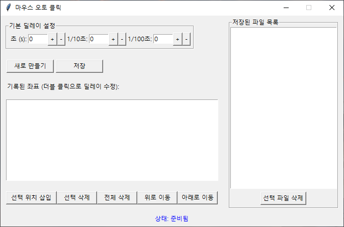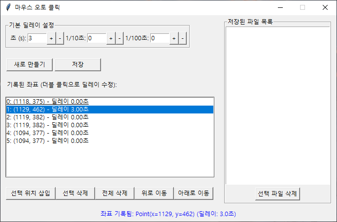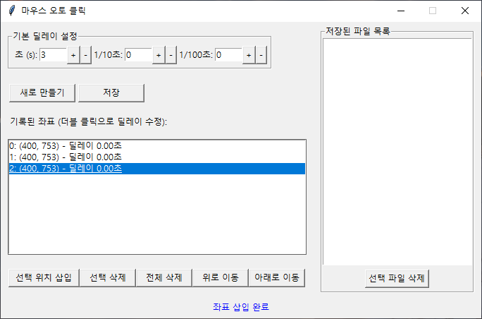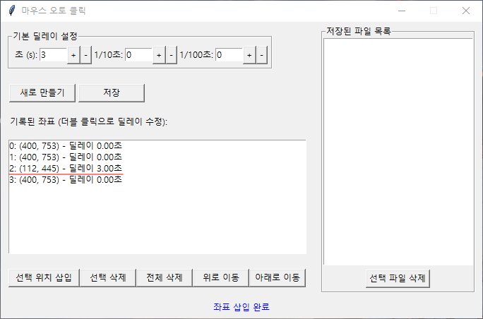 F3 : 실행 (기록된 좌표 순으로 위에서 부터 실행 됨)