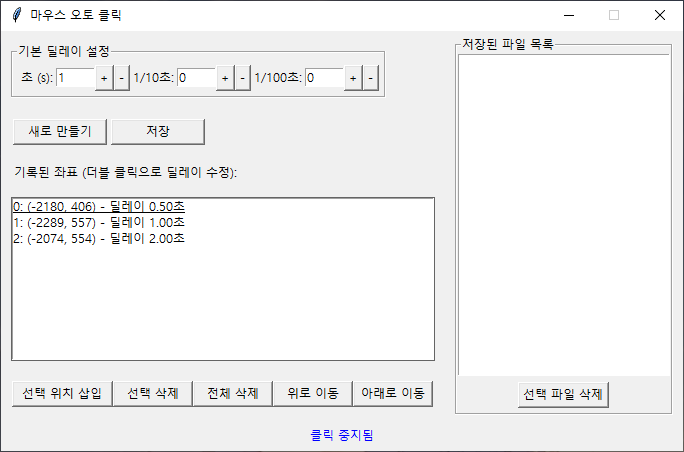 0.5초 → 0번 위치로 이동 후 클릭 → 1초 → 1번 위치로 이동 후 클릭 → 2초